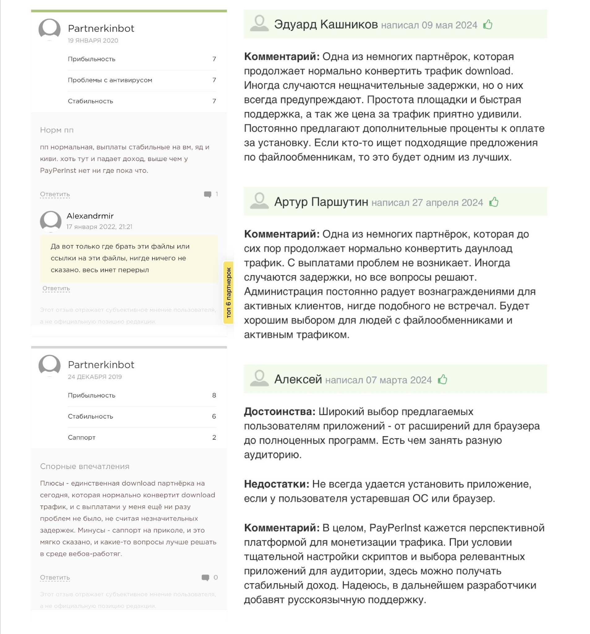 В отзывах о Pay Per Install мы видим преимущественно положительные высказывания. Пользователи говорят о стабильной работе сайта без лагов, что редкость среди подобных сервисов. Также в комментариях люди подтверждают, что платформа действительно платит деньги.