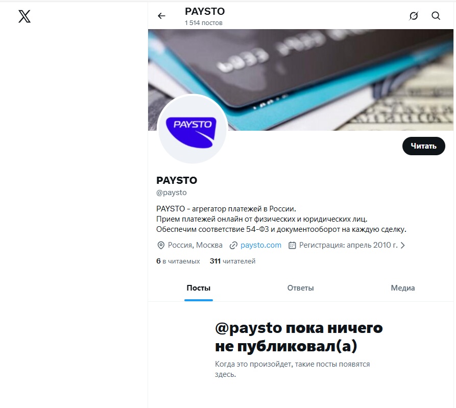 Такая низкая активность в публичном медиапространстве характерна для многих B2B-сервисов. Paysto фокусируется на прямых продажах и работе через профессиональные каналы, а не на привлечении массовой аудитории через контент.