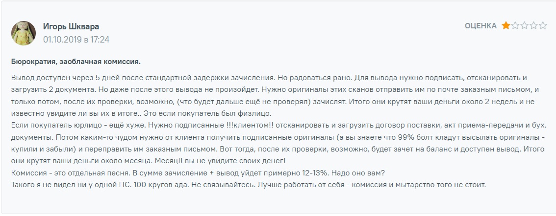 Гарантиям легальности и работы инфраструктуры, судя по позитивным откликам, можно верить. Но гарантии отсутствия бюрократических сложностей — нет. Обещание «простого входа» на рынок для многих клиентов оборачивается длительным документооборотом, что видно из негативных отзывов.