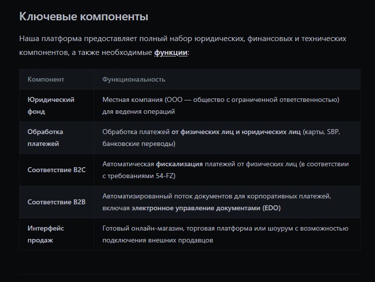 Paysto не является автором обучающих курсов или тренером. Компания предоставляет исключительно инфраструктурные услуги для бизнеса. Это готовая юридическая, платежная и техническая платформа для выхода на рынок.