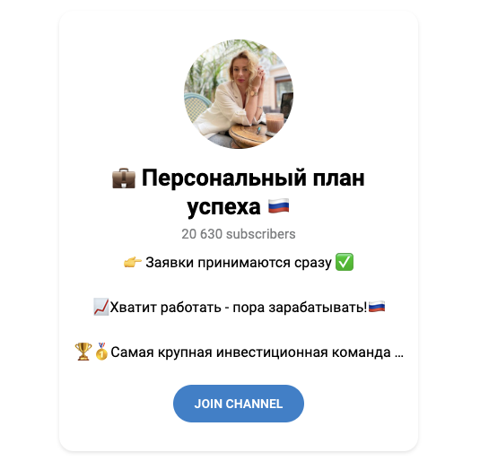 Интересно то, что в Телеграмме, присутствует канал «Персональный план успеха», который принадлежит некоей Наталье, которая выкладывает в его ленте те же самые отзывы, те же самые посты и пр. Более того, у данных ТГК дажа информация в аннотации общая.