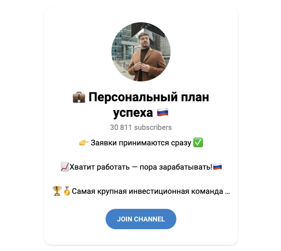 Телеграмм-канал «Персональный план успеха» ведет некий трейдер, который представляется именем Владимир. Этот специалист по инвестициям заявляет, что умеет торговать на биржах с огромной прибылью и без убытков.