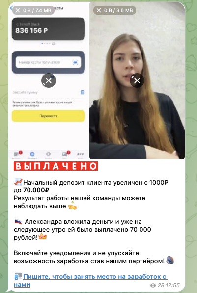 Еще в ленте ТГК присутствуют видео-ревью. Авторы этих роликов утверждают, что получили обещанную им выплату.