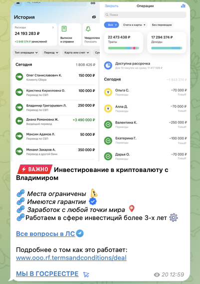 На телеграм-канале «Персональный план успеха» регулярно появляются скриншоты банковских выписок. Они отражают переводы на десятки, а иногда и сотни тысяч рублей.