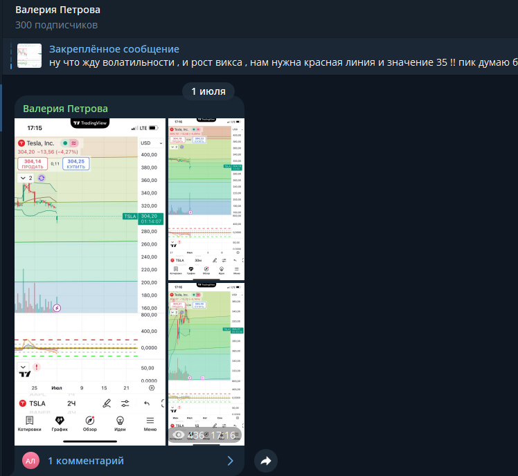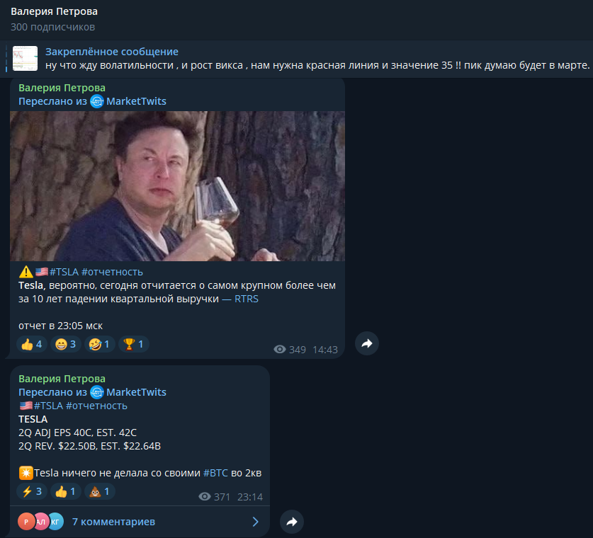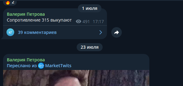 В авторских постах тоже ничего интересного не нашлось, иногда Валерия может просто опубликовать скриншоты графиков без каких-либо комментариев.