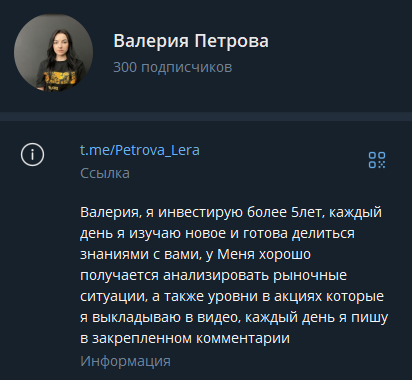 Обзор проекта Валерия Инвестиции Телеграмм: отзывы пользователей, проверка канала трейдера Petrova Lera