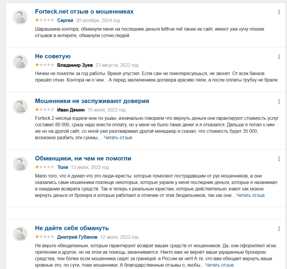 Сотрудничество с подобными конторами приводит к тому, что человек, который столкнулся с брокером-мошенником, теряет еще около 50% от суммы, которую ему предлагали вернуть. Отзывы в сети есть почти на всех чарджбекеров. Люди говорят о том, что их просто обманули: