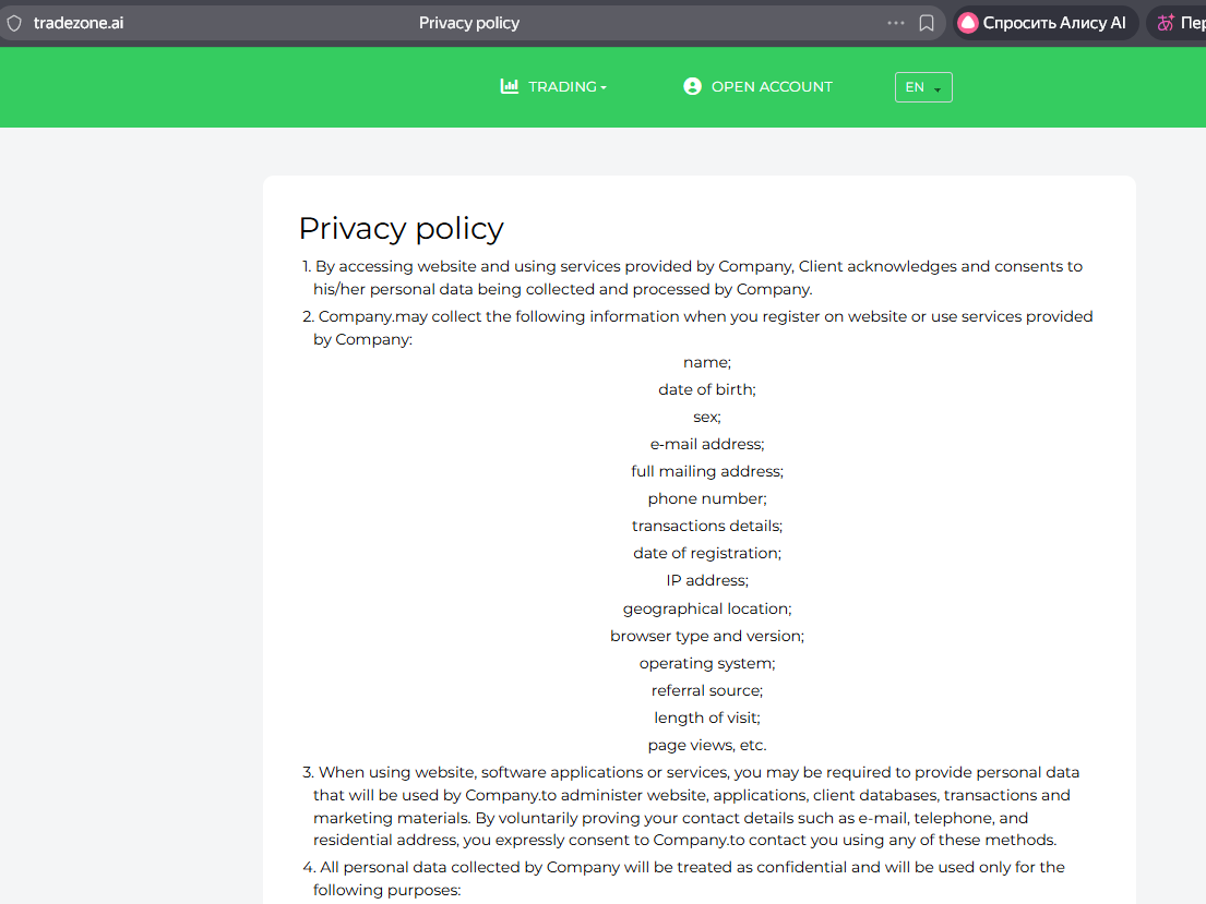 Попытки прочитать их приводят к тому, что происходит редирект вообще на другой сайт – tradezone ai.