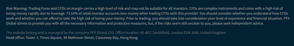 В этом случае становится непонятно: связан ли этот сайт с работой рассматриваемого брокера или создателям PFX Global было просто лень писать собственные документы или хотя бы скопировать их, поэтому они просто перенаправляют на другой сайт пользователей, которые решили ознакомиться с документами.