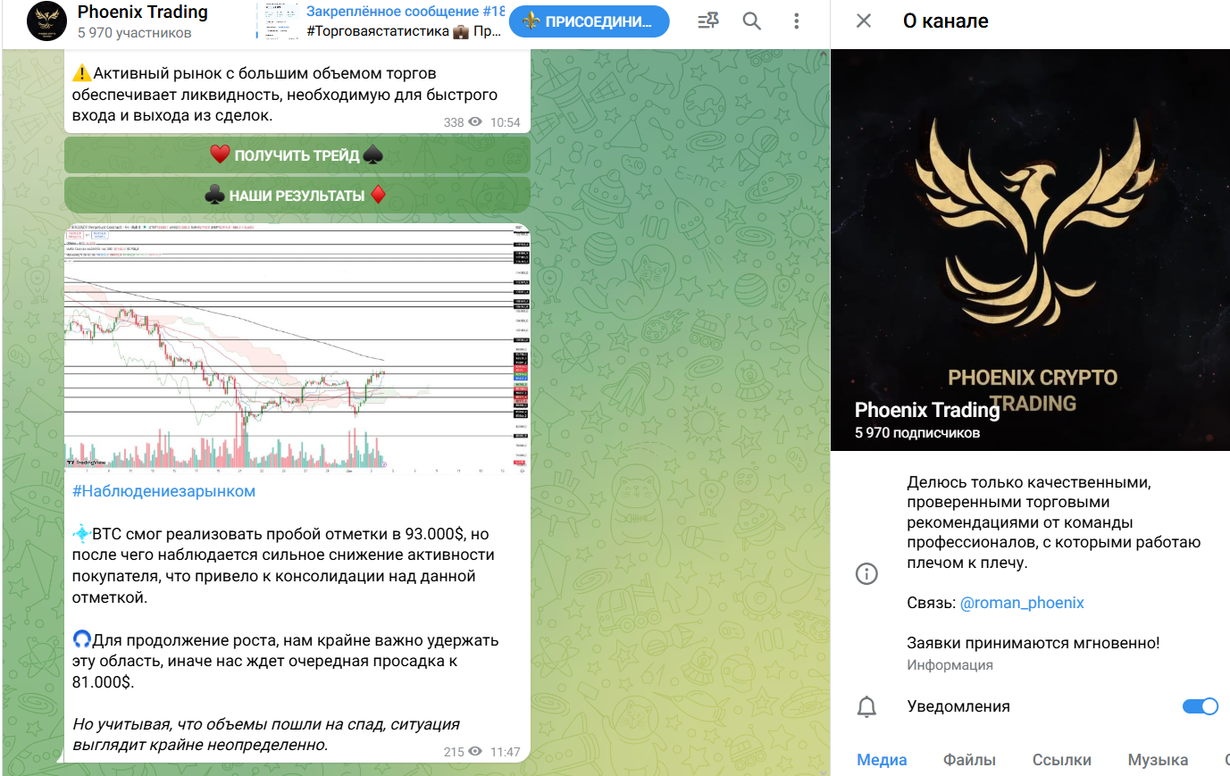 Обзор Телеграмм канала Phoenix Trading: отзывы и проходимость сигналов трейдера Roman Phoenix