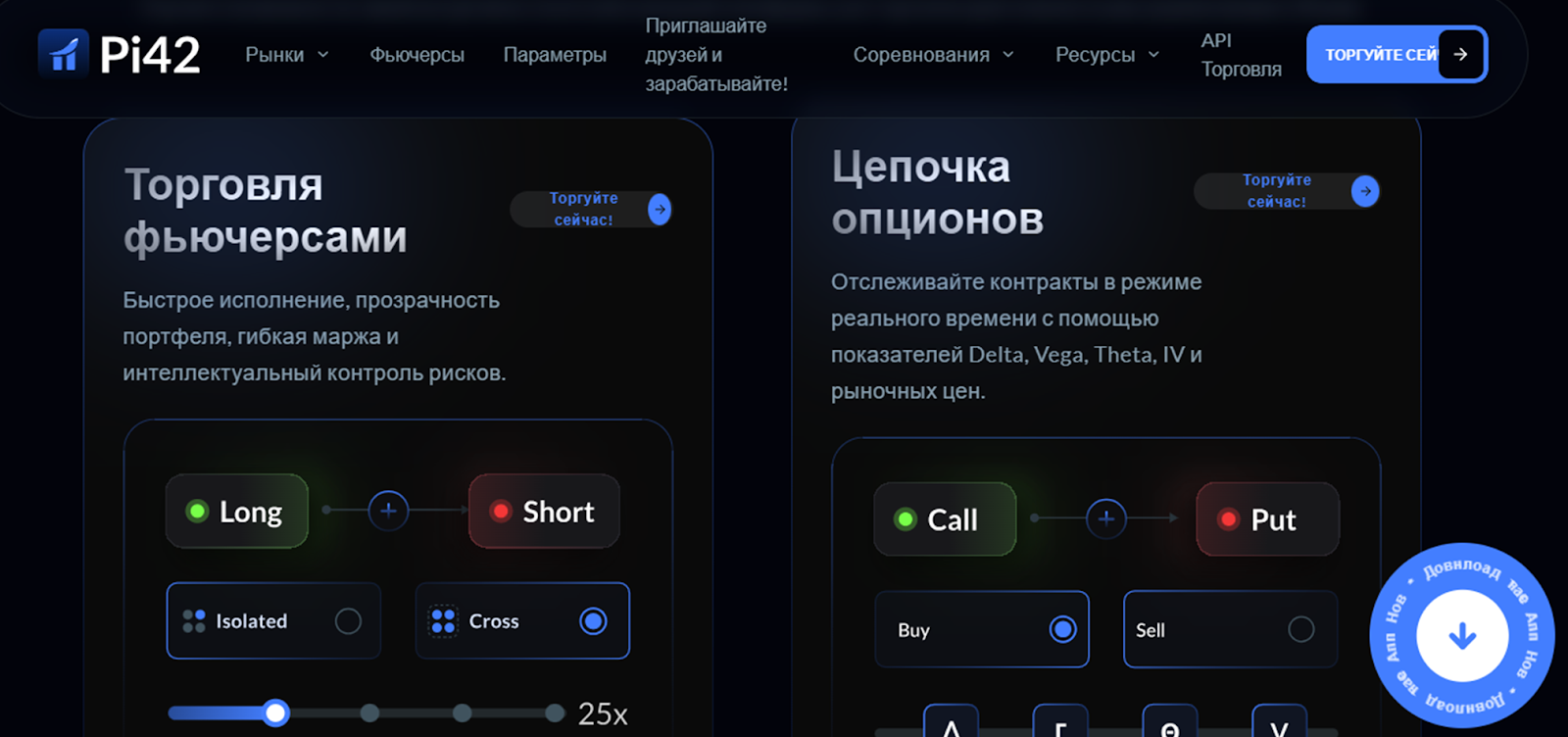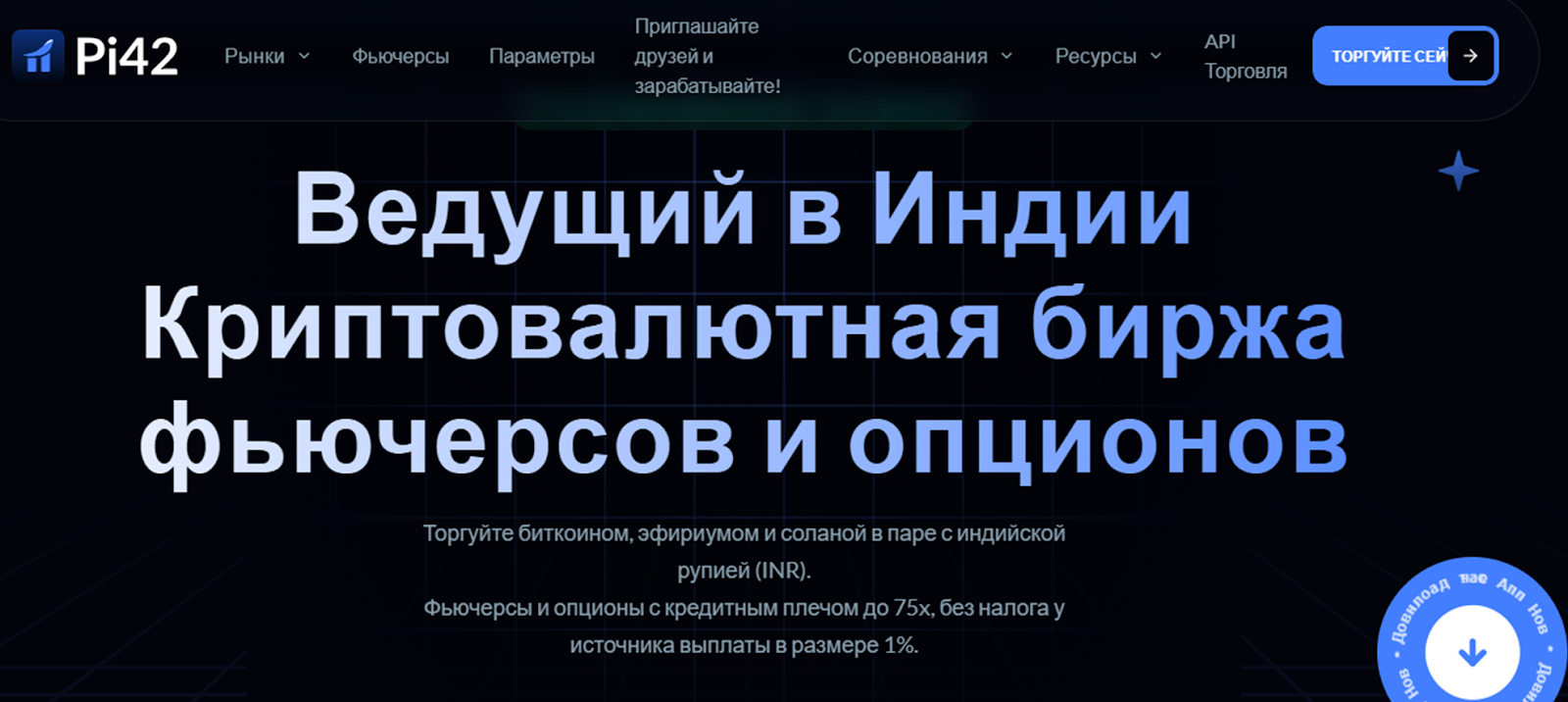 Pi42 Exchange – криптовалютная биржа, которая легализована на территории Индии. Проект узконаправленный и специализируется на фьючерсах на крипту и рупии, а также на опционах.