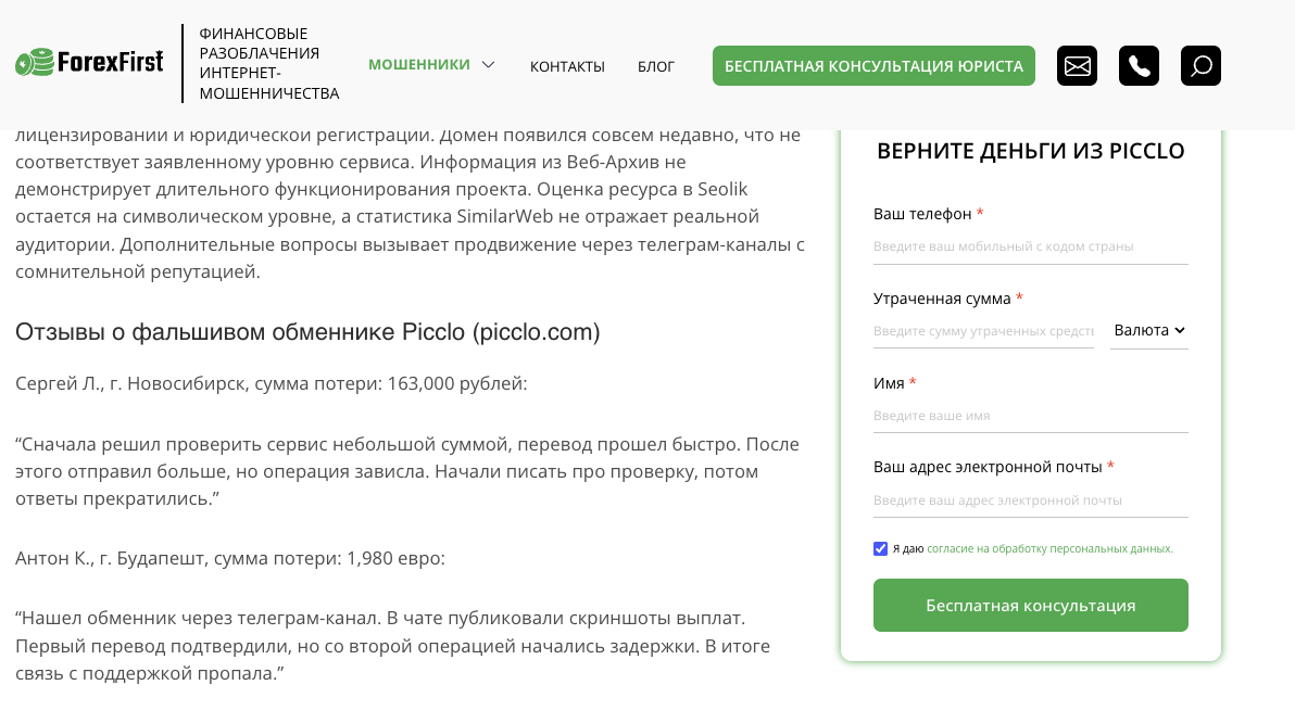 Проверка работы криптообменника Picclo: отзывы клиентов, что предлагается пользователям сервиса Пиккло