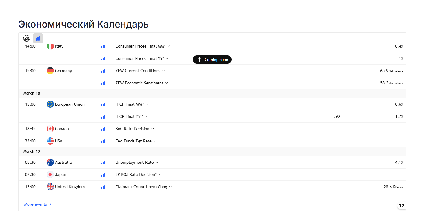Интерфейс официального сайта локализован под русскоязычных пользователей, что позволяет клиентам быстро ознакомиться с основными разделами проекта. Если пролистать главную страницу биржевой платформы Nexa Limited, то можно обнаружить экономический календарь для внесения инвестиций. В нем расписаны движение стоимости и ликвидность монет и токенов на рынке.
