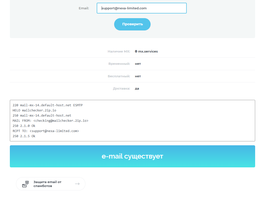 На криптовалютной бирже работает служба поддержки Support@NexaLimited com, проверка адреса которой показала, что электронная почта существует. После обращения к операторам техподдержки ответа потребовалась ждать двое суток.