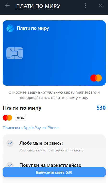 Первые упоминания о Плати по миру появились в мае 2025 года. Его преподносят как возможность за несколько кликов выпустить банковскую карту MasterCard и оплачивать сервисы, которые не принимают российские карты Мир.