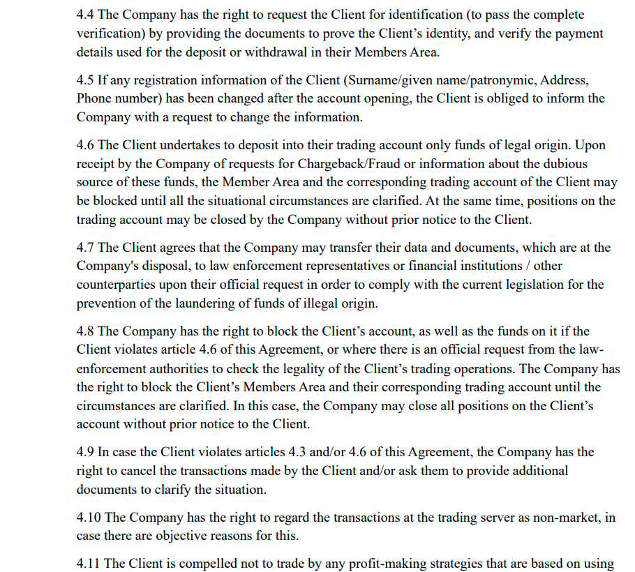 - Документы типовые, с широкими правами компании менять условия, закрывать позиции и блокировать доступ.