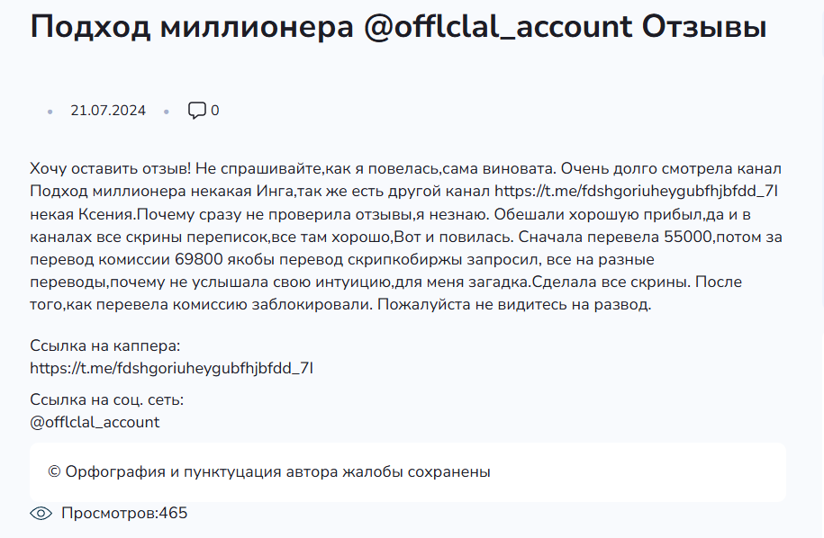 Этот так называемый «Подход миллионера» — не более чем очередная ловушка для наивных инвесторов. Обещания баснословных доходов за короткий срок без реальных подтверждений — классический признак мошенничества. Не дайте себя обмануть пустыми словами и фальшивыми отзывами.
