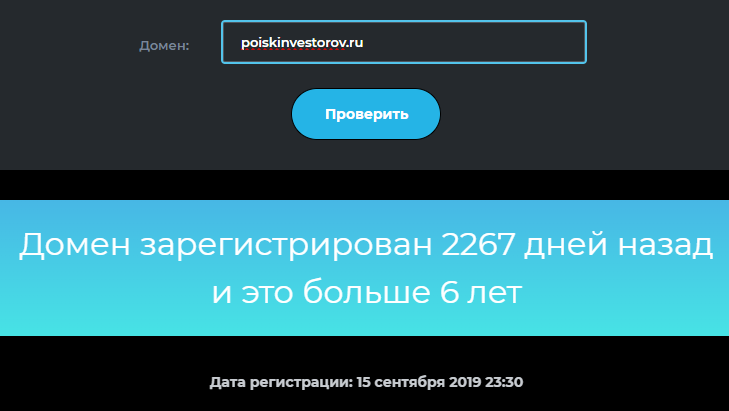 Анализ домена показал, что платформа существует с сентября 2019 года.