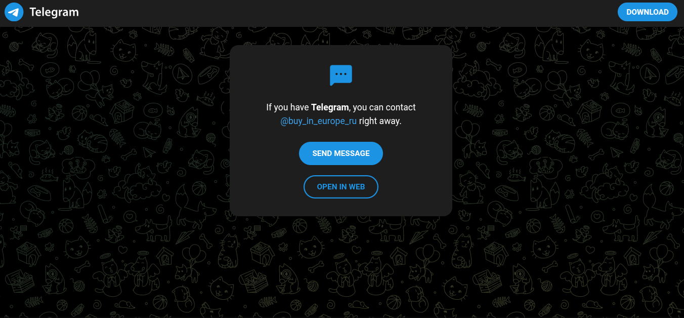Первым делом скажем — магазин с автомобилями больше не доступен по ссылке https:// t me/buy_in_europe_ru. Как только мы перешли по адресу на ТГ-канал «Покупаем в Европе», то увидели, что паблик удален. Такое обычно происходит, когда поисковый алгоритм находит реально мошеннический проект, на которой поступало много жалоб. Единственный выход в таком случае — исключение проекта из выдачи.