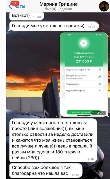 - скрины отзывов «довольных» клиентов;