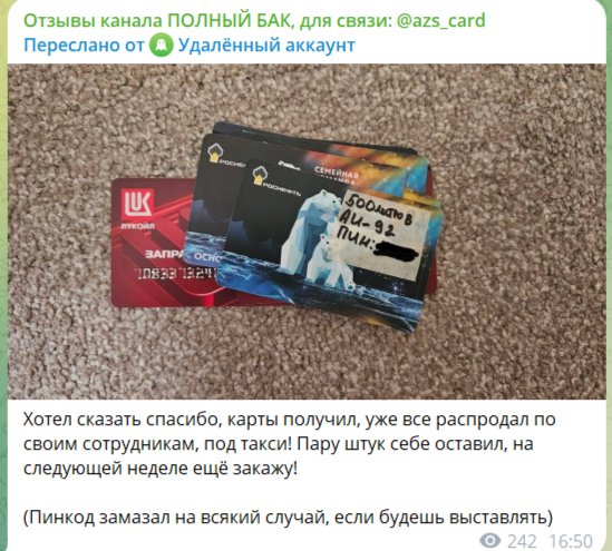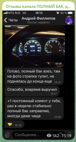 Оплату, скорее всего, автор группы в Тг «Полный бак» принимал на свою личную банковскую карту.