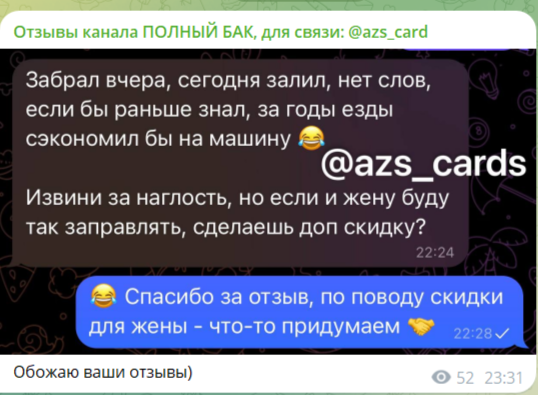 Ранее существовало комьюнити в Тг «Полный бак», владелец которого продавал топливные бонусы за деньги. Однако в марте 2026 года такого проекта в Телеграмм нет, остался только тематический канал с отзывами. В этом обзоре проанализируем работу админа сообщества, а также изучим отклики его клиентов.