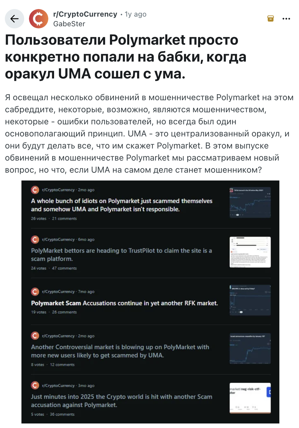 Так как компания сейчас очень популярна в сети, часто можно встретить сомнительные истории вокруг нее от третьих лиц. Встречаются предложения с фейковыми airdrop или обещаниями легкой прибыли, что характерно для мошенников, паразитирующих на известных брендах. Также можно встретить статьи о “Polymarket 100% Winrate Strategy,” которые описывают функционал различных ботов для заработка на платформе.
