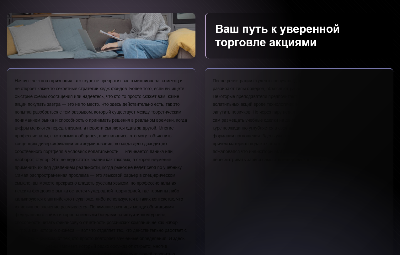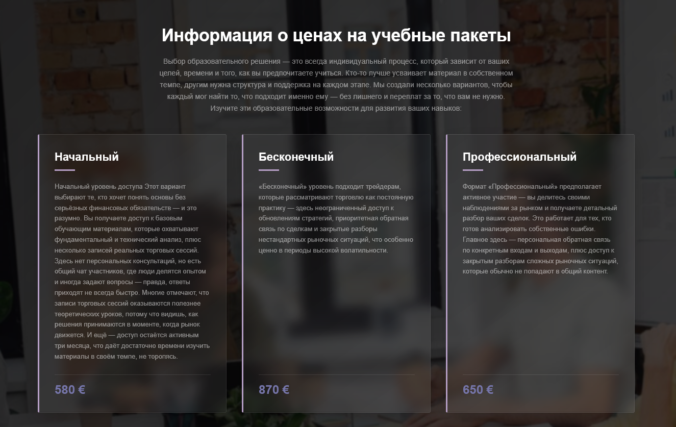 При том, что пользователям рассказывают об уроках трейдинга, описанные преимущества на странице относятся вообще непонятно к чему. Текст больше похож на кривой перевод или же генерацию нейросетью.