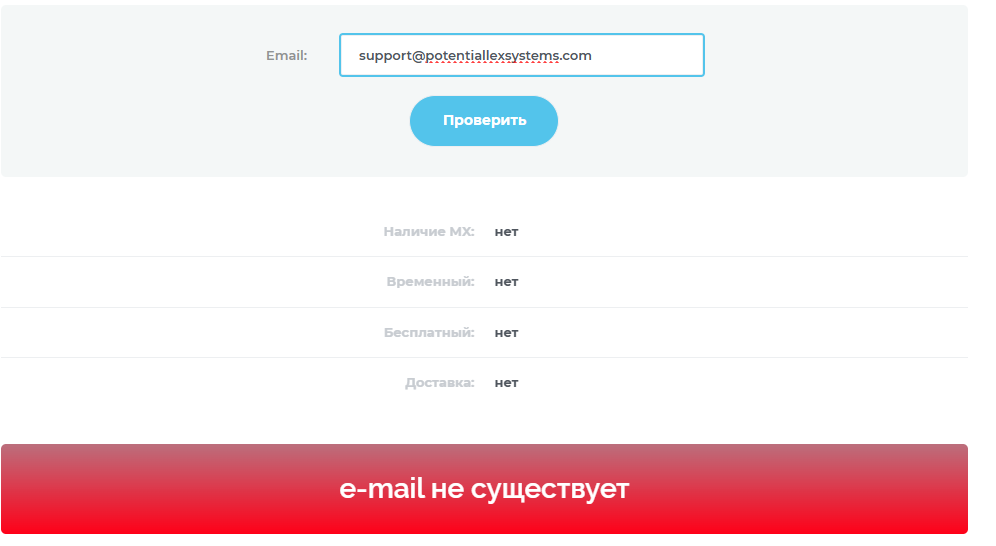 Указанный для обратной связи адрес электронной почты support potentiallexsystems com оказался несуществующим. Подобные попытки обмана аудитории – достаточно серьезный фактор риска.