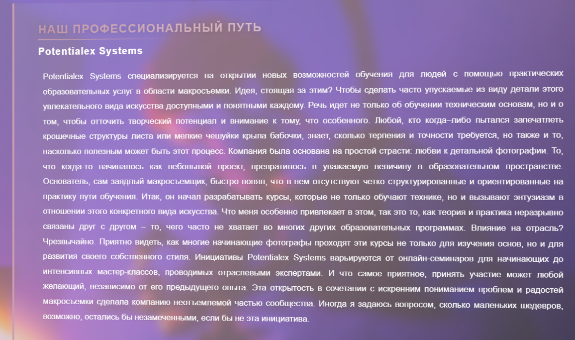 У сайта есть схожий проект – potentialex systems com de. Веб-ресурс также похож на однодневку, но он представлен на немецком языке, а пользователям предлагаются курсы не по трейдингу, а по макросъемке.