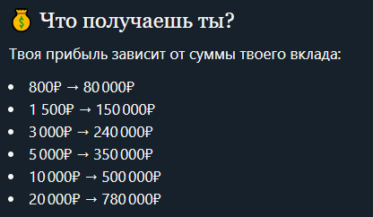Дмитрий предлагает классическую раскрутку счета. Пользователи должны внести депозит на карту физического лица, не Дмитрия Погорелова, и через сутки им вернется в разы большая сумма. Делать ничего не надо.
