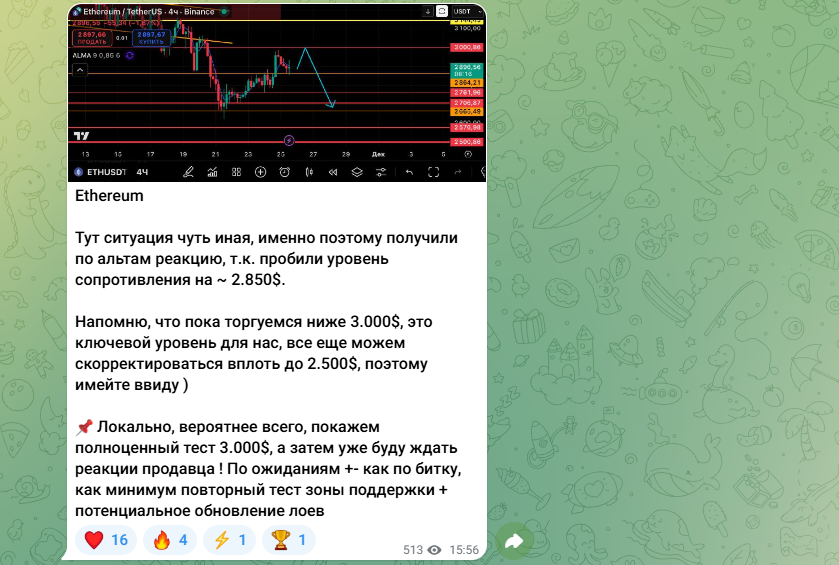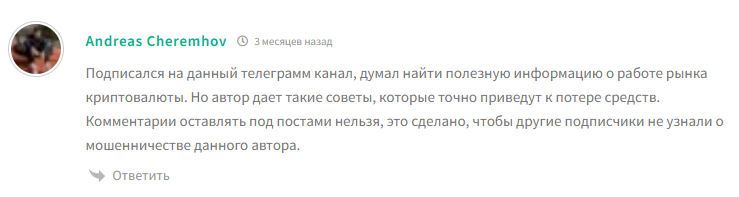 Что касается остальных постов, то это максимально просто технический анализ, который можно найти на TradingView. Прямых сигналов трейдер не дает, а объем постов небольшой. Автор постоянно использует слова, типа “Вероятнее всего” / “Возможно”, что неудивительно, ведь на рынке всегда присутствует неопределенность. Вдобавок прозрачность низкая, людям не дают делиться своим мнением, а на фоне этого доверять данному инвестору крайне опасно.