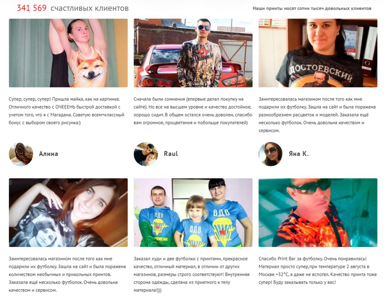 На сайте магазина myprintbar ru расположены довольные отзывы покупателей. Якобы за все время их было оставлено около 340 тысяч, хотя в статистике проекта авторы пишут, что они обслужили всего 60 тысяч людей.