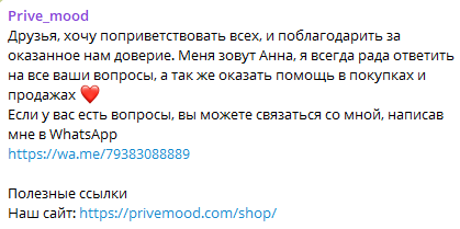 Стоит ли делать покупки в телеграм-магазине «Прайв Муд»