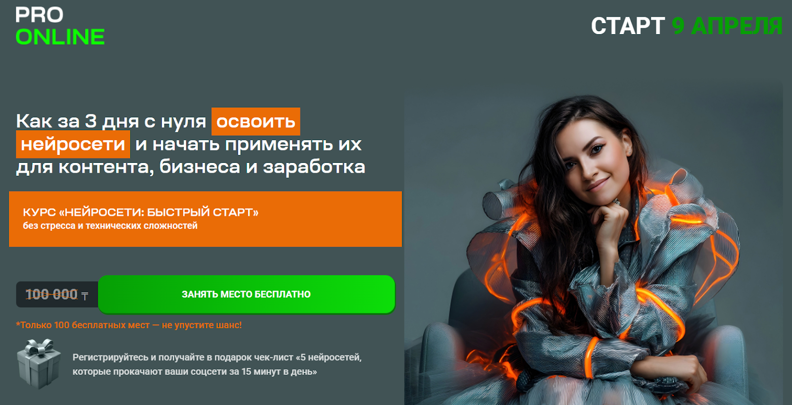 Изначально пользователей приглашают на бесплатный вебинар по нейросетям, где уже желающих будут записывать на платное обучение. Его стоимость и конкретная программа также будет озвучена уже после мастер-класса от Арины Ратушной.