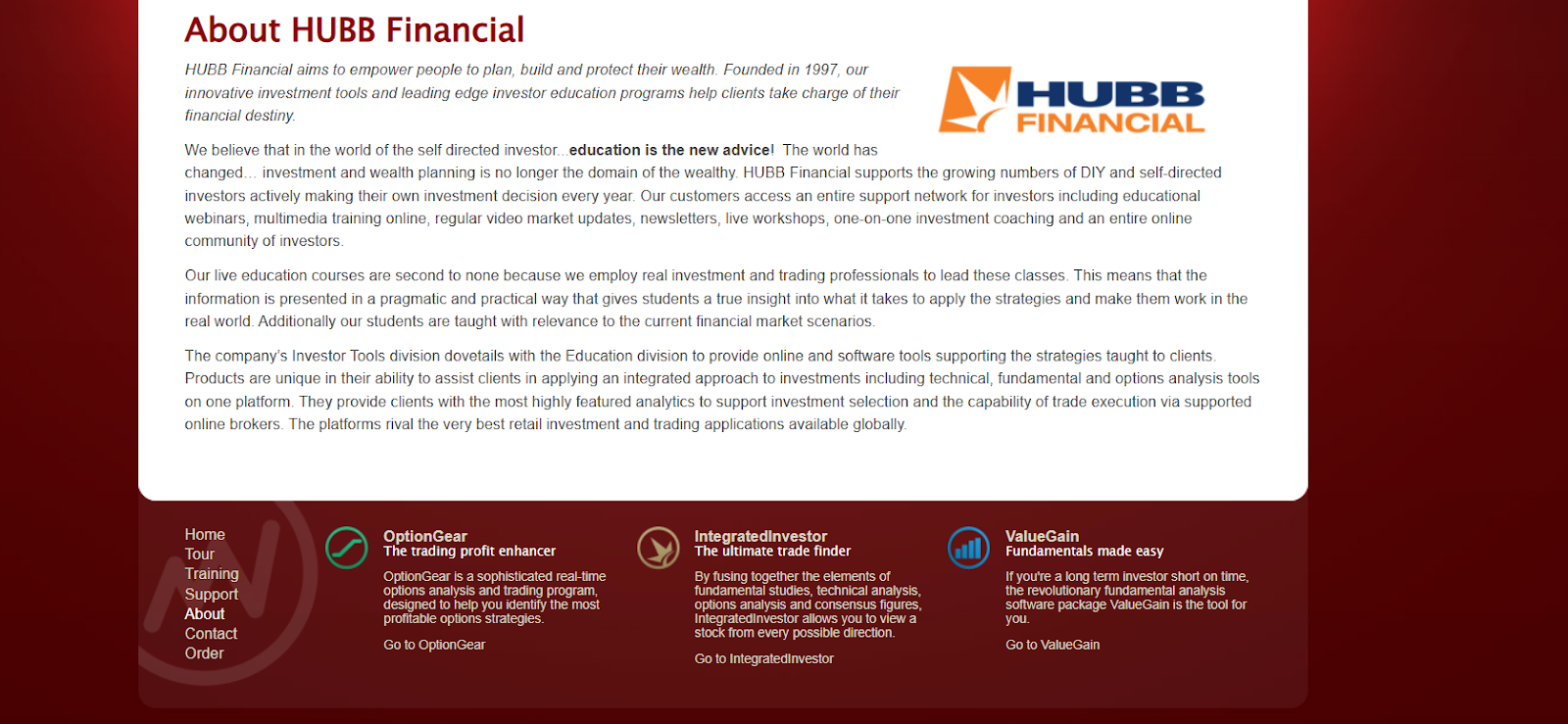 Компания HUBB Financial, которая выпустила площадку, была создана в 1997 году. Она, как указано на сайте проекта, предлагает инновационные инвестиционные инструменты, а также образовательные программы. По словам создателей, у них множество полезных курсов по финансовой грамотности.