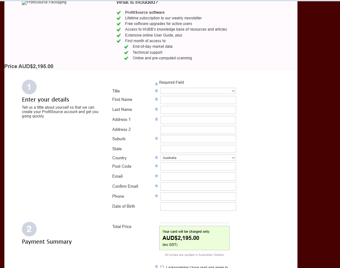 Также, как обозначено, основатели не станут брать ответственность за риски, связанные с торговлей на сайте. Администрация не дает гарантий качественной работы площадки, а также достоверности размещенной информации. Цена ПО составляет 2 195 австралийских долларов. Какие платежные методы поддерживаются для оплаты, неизвестно. Проводятся ли скидки для пользователей, не указано. Известно то, что существует возврат. Его можно осуществить в течение 30 дней.