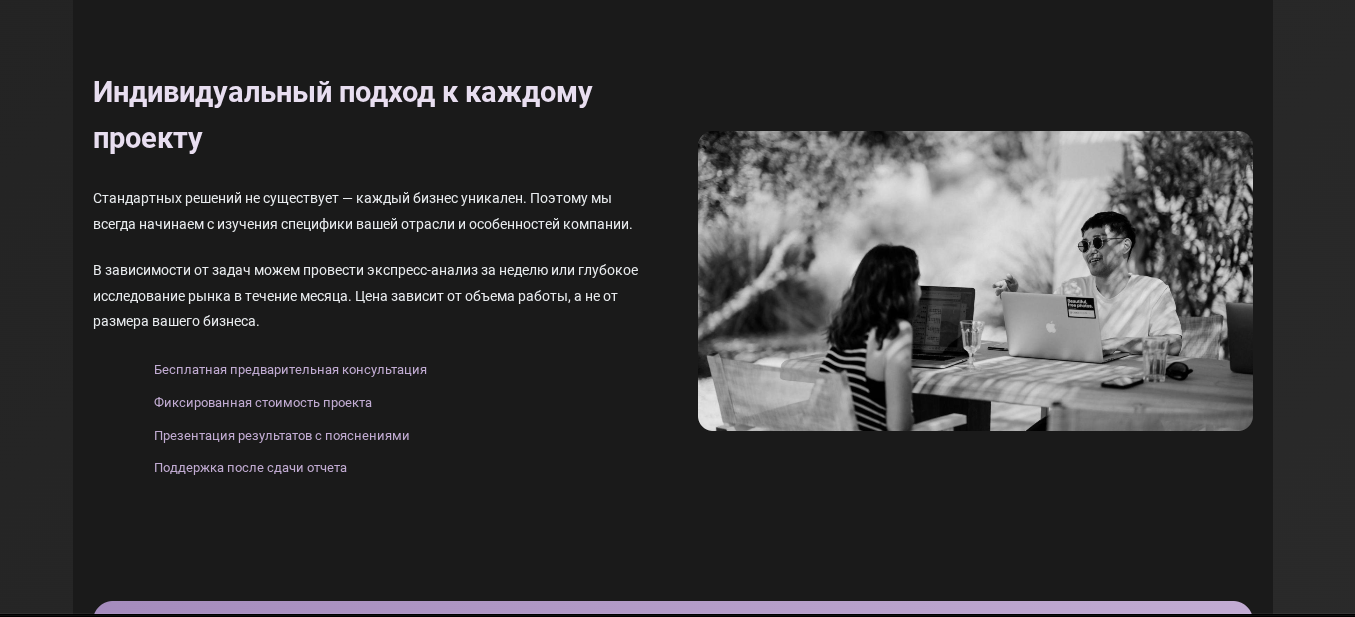 - Практические рекомендации. Клиенты получают отчет с детальным описанием ситуации рынка и методами решения проблем. Результаты анализа можно сразу использовать для адаптации бизнеса.