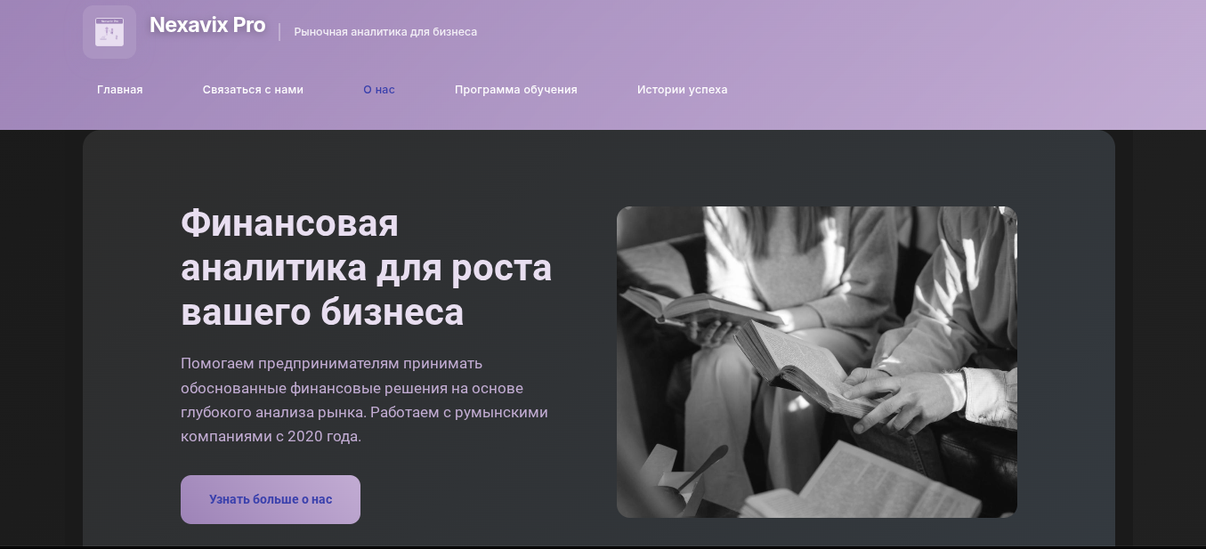 «Нексавикс Про» — якобы комплексная образовательная платформа, предлагающая тематические курсы для улучшения финансовой составляющей. Кроме того, команда академии Nexavix Pro предлагает юридическим пользователям универсальную рыночную аналитику для бизнеса.