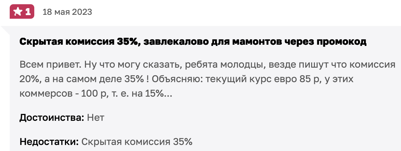 Очевидно, что «выгодными» условия сотрудничества с данным сервисом назвать сложно. Такой вариант может быть актуален только в случае разовых или крайне редких покупок. И все же куда более критичными выглядят другие пробелы в структуре проекта, которые важно учитывать каждому.
