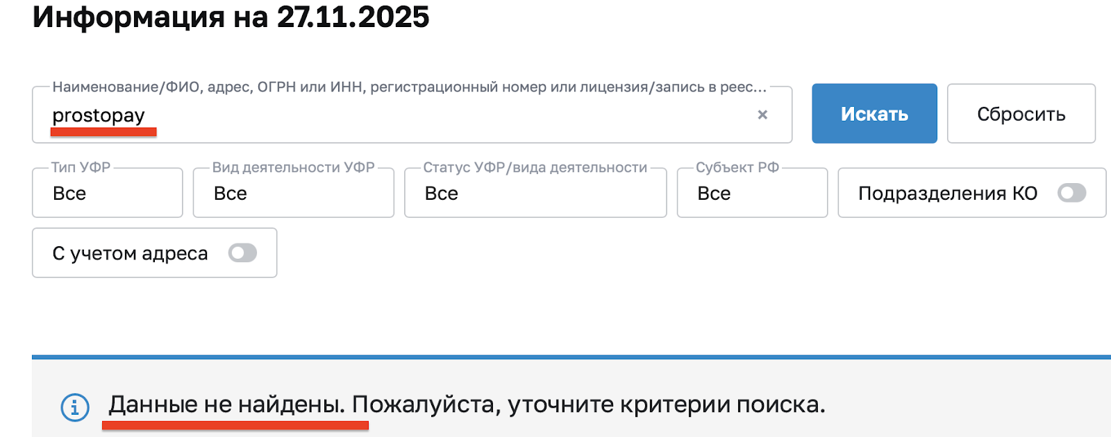 Проверка платформы на предмет присутствия в реестре участников финансового рынка также результатов не дала. По сути, оплата подписок и товаров через «Просто Пей» сопровождается огромными рисками. Клиенту не выдается чек или иной документ, подтверждающий факт оплаты услуги.