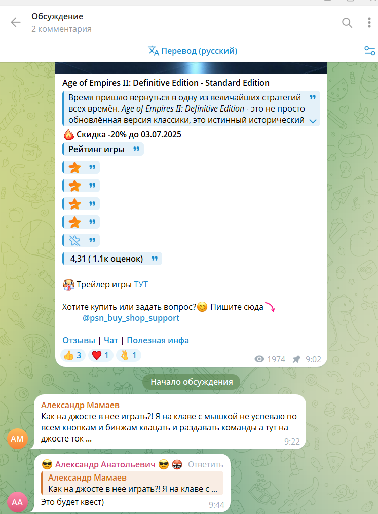 Люди обсуждают игры, технические подробности. Это, несмотря на обман с количеством подписчиков и попытки создать иллюзию популярности, говорит в пользу магазина.