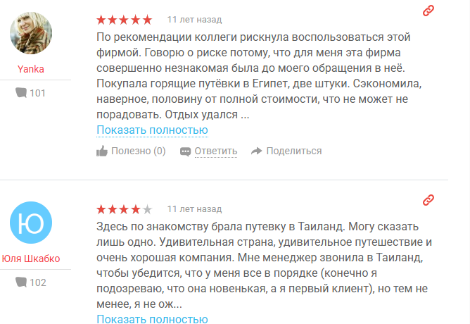Откликов на сервис в публичном поле хватает, и они в основном восторженные. Довольные клиенты отмечают выгодные цены и быстрые ответы менеджеров, благодарят за сэкономленные средства и удачно подобранный отель.