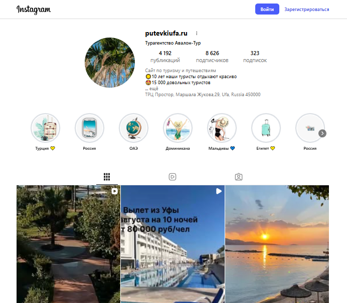 Параллельно проект присутствует в VK. Здесь статистика выглядит более скромно. Сообщество в Инстаграм используются как витрина, где выставляются карточки отелей с ценами, которые кажутся значительно ниже рыночных.