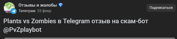 PVZPlayBot — очередной скам-бот, где обещают золотые горы, а на деле — пустые карманы. Не ведитесь на этот развод!