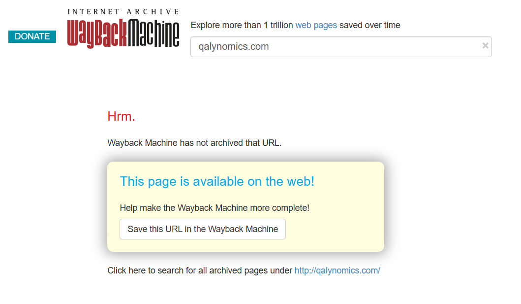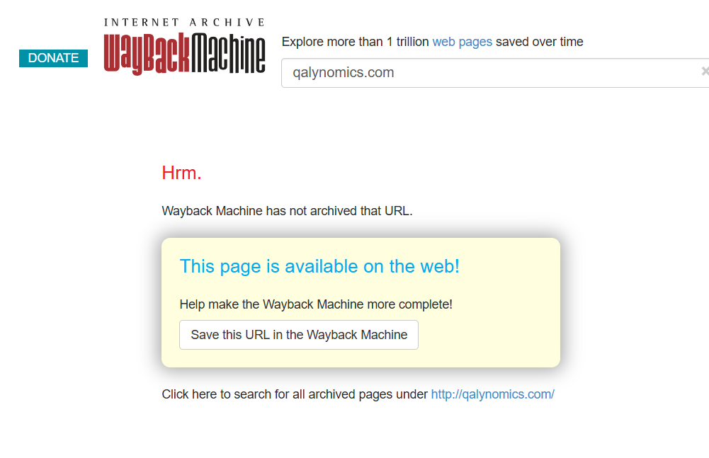 - Отсутствие снимков QalyNomics com в веб-архиве при заявлениях о работе с 2017 года указывает на то, что проект существует гораздо меньше заявленного срока.