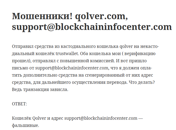 - не соответствующие данные дорожной карты Qolver официальной информации о сайте может оказаться не единственным обманом;