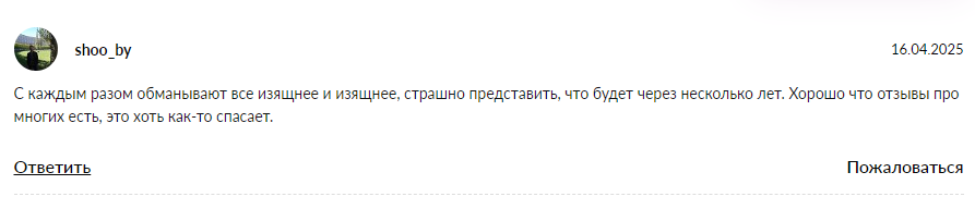 Один из клиентов пишет, что с каждым разом авторы различных проектов делают их все изящнее и изящнее и ему уже страшно представить каким обман будет через несколько лет. Он также отмечает, что отзывы клиентов могут спасать от подобных площадок, созданных лишь для обмана, поэтому важно обращать на них внимание.