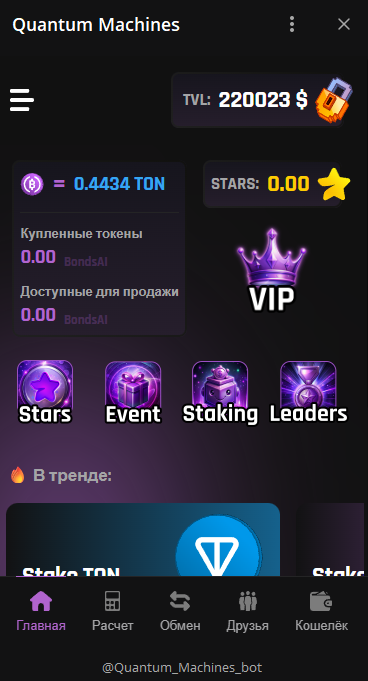 Найти бот можно по внутренней ссылке @Quantum_Machines_bot, непонятно, когда он был запущен, но в декабре 2025 года сообщается о ежемесячной аудитории в 211 000 человек. Это внушительные цифры, поэтому мы подозреваем проект в накрутке, поскольку его узнаваемость в сети не соответствует количеству пользователей.