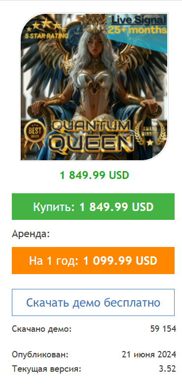Покупатели получают самих советников, а также советы по выбору брокеров с низким спредом. Поддержка работает через личные сообщения на разных платформах. Результаты сигналов Quantum Queen публикуются на реальных счетах. Сам разработчик управляет настройками и решает, какую стратегию использовать.